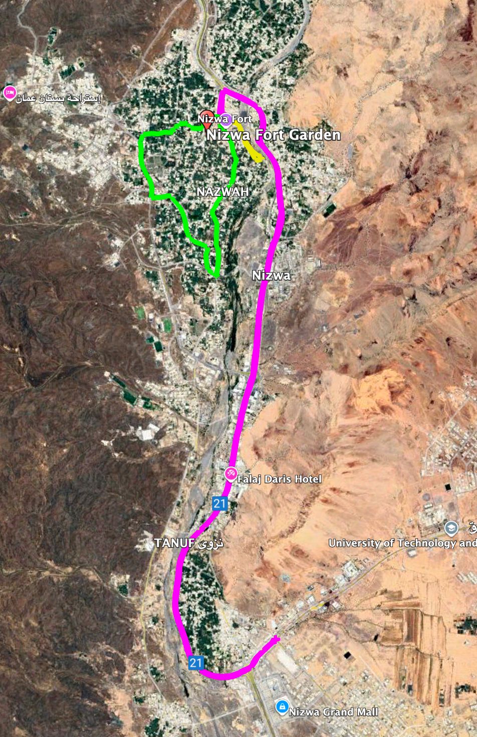 الانطلاق / خط النهاية: بالقرب من حديقة قلعة نزوى، مع رؤية ممتازة للجمهور، الإعلام، ومنظمي السباق